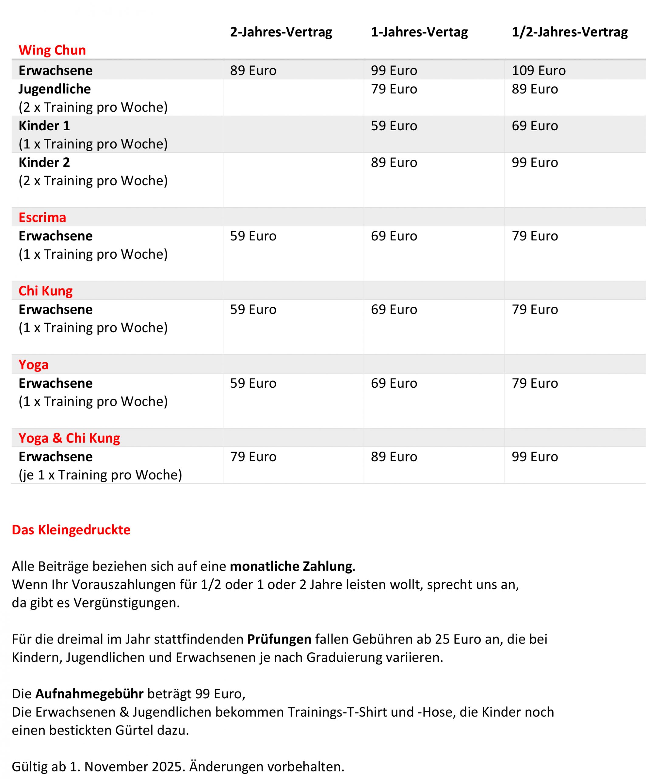 Ihr könnt damit Wing Chun, Escrima, Chi Kung und Yoga trainieren und zu jeder Trainingseinheit kommen - so oft Ihr wollt!